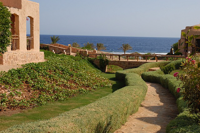 Der “helle” Streifen im Meer ist das “Haus”-Riff