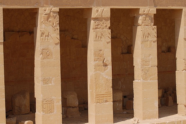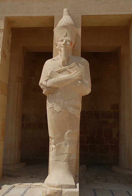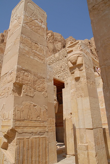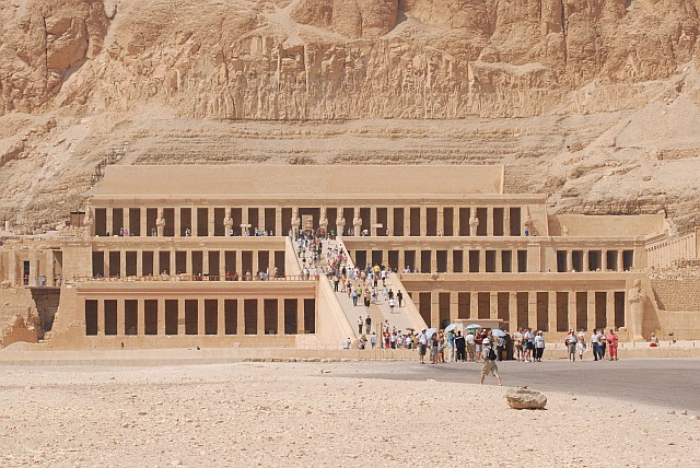 Hatschepsut war die Pahraonin Ägyptens von ca 1480 bis 1460 v. Chr. (18. Dynastie) und ließ diesen Totentempel in Deir el-Bahari erbauen. Mehr bei Wikipedia