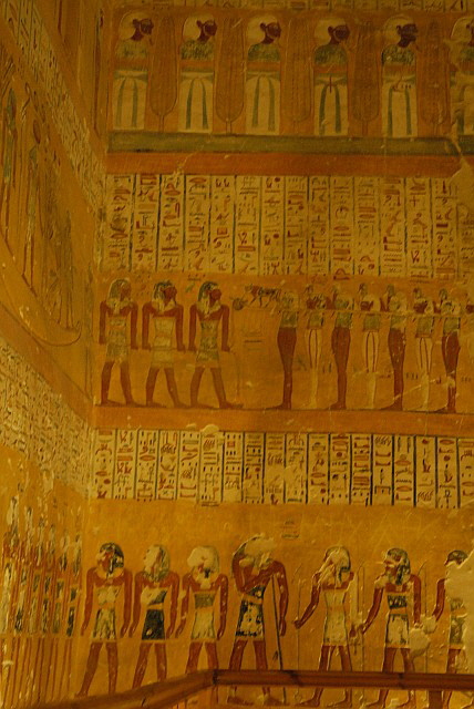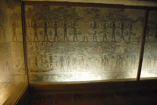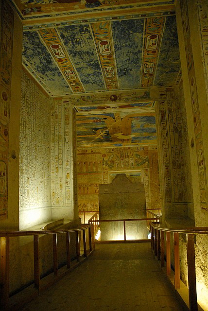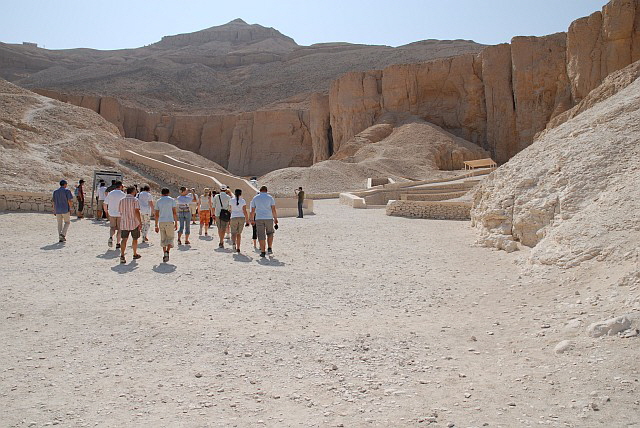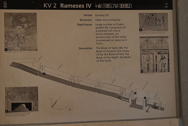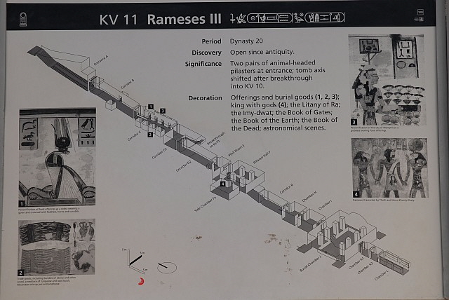 Da inzwischen Grabräuber die Pyramiden unsicher machten, wurde nach neuer Möglichkeit der Beisetzung und Sicherstellung der unversehrten Grabbeigaben gesucht. Im Tal der Könige fand man die idealen Bedingungen, um die Gräber in den Berg zu bauen und nach der Beisetzung den Zugang zu verschütten. Dadurch war es schwierig, die Gräber zu entdecken. Hier sieht man die schematische Darstellung der Grabgänge in den Berg hinein.
